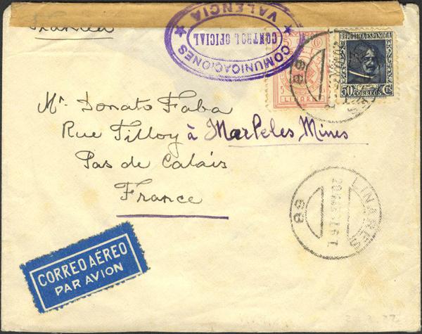 Guerra Civil. Viñeta. CONSEJO PROVINCIAL DE VALENCIA SANIDAD Y ASISTENCIA SOCIAL, al dorso llegada. MAGNIFICA.