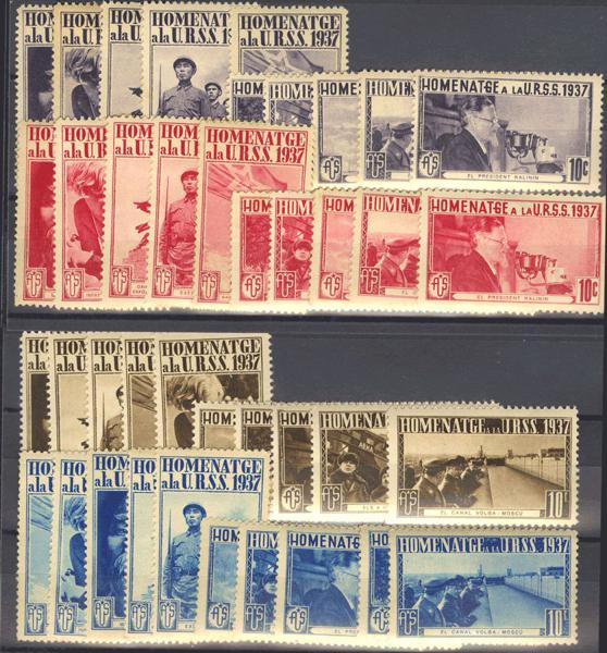★/(★)1937. Cuatro series completas en los cuatro colores que constituyen el conjunto de la serie. HOMENATGE A LA URSS. MAGNIFICAS. (Guillamón 1739/48A-D).