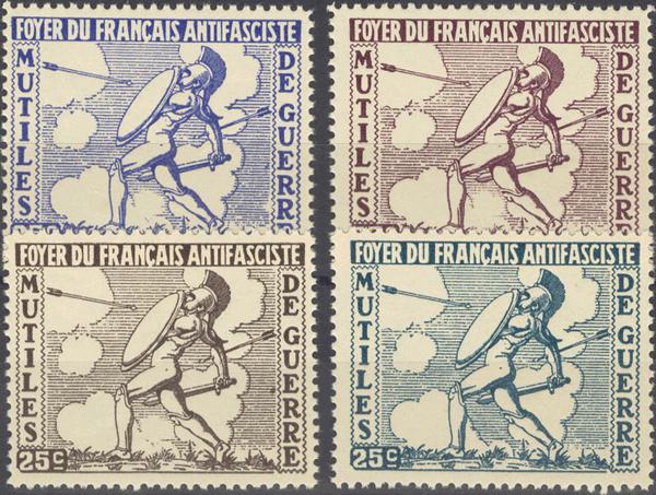 (★)1937. Serie completa. FOYER DU FRANCAIS ANTIFASCISTE, MUTILES DE GUERRE. MAGNIFICA. (Guillamón 2231/34).