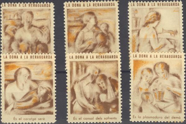 ★1937. Serie completa, sellos separados. LA DONA A LA RERAGUARDA. MAGNIFICA. (Guillamón 2322/27).