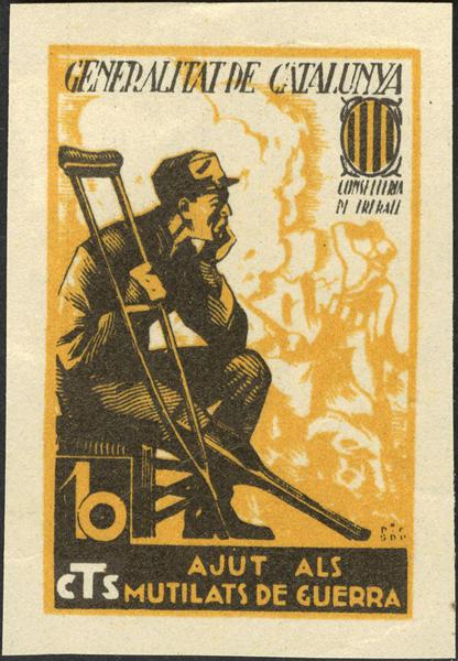 (★)1937. 1 pts. SIN DENTAR. CONSELLERIA DE TREBALL, AJUT ALS MUTILATS DE GUERRA. MAGNIFICO Y NO CATALOGADO, SIN DENTAR. (Guillamón 2145).