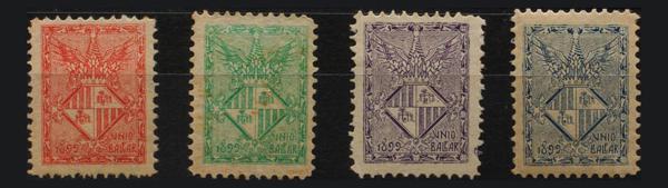 ★/(★)1899. Cuatro viñetas en diferentes colores. BALEARES. UNIO BALEAR. MAGNIFICAS. (Nathan B-1)