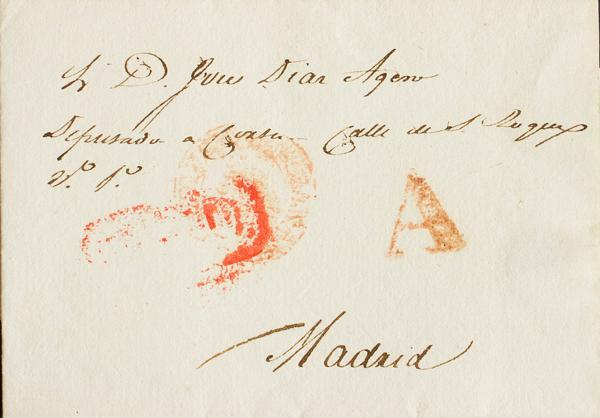 1848. ZAFRA a PARIS (FRANCIA). Baeza ZAFRA / ESTREM.B., en rojo. MAGNIFICA Y ESPECTACULAR.