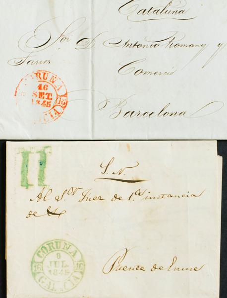 1848. EL FERROL a PUENTEDEUME. Marca "A", en rojo de abono (P.E.17) edición 2004 y baeza FERROL / GALICIA, en rojo. MAGNIFICA.