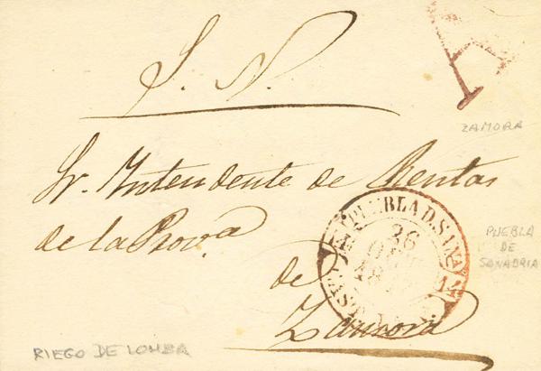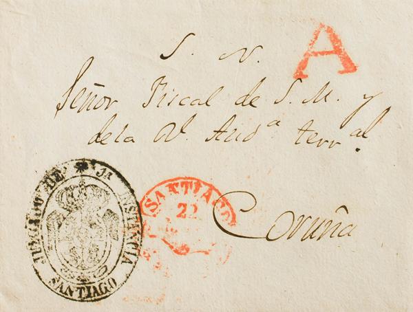 1848. LA CORUÑA a PUEBLA DE TRIVES. Marca "A", de abono, aplicada en tránsito de Orense (P.E.19) edición 2004. MAGNIFICA Y MUY RARA.