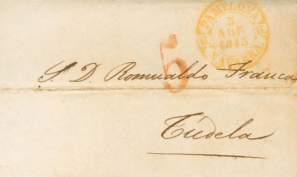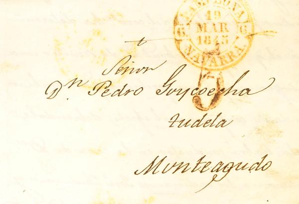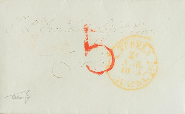 1848. TUDELA a OLORON (FRANCIA). Marca "P.P.", de Tudela (P.E.24) edición 2004. MAGNIFICA Y MUY RARA.