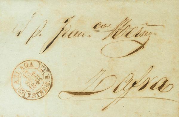 1849. CARRIL DE LLERENA (BADAJOZ) a CACERES. Baeza BERLANGA / ESTREM.B., en rojo. MAGNIFICA.