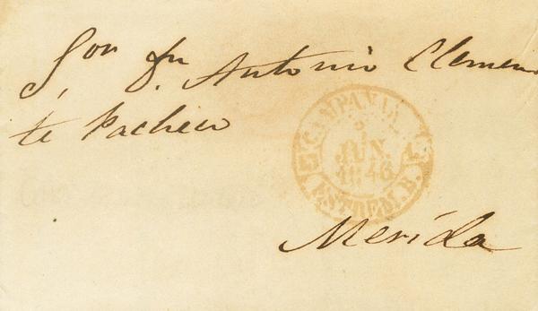 1848. TORREMOCHA (CACERES) a MERIDA. Baeza MONTANCHEZ / ESTREM.B., en rojo. MAGNIFICA.
