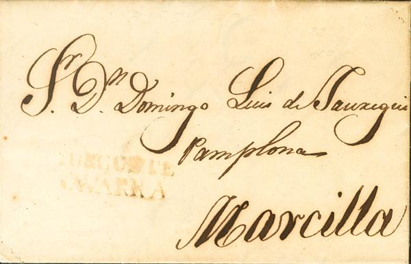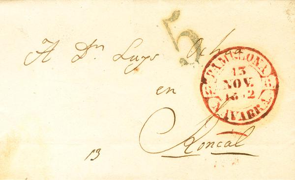 1848. BARASOAIN (NAVARRA) a PAMPLONA. Marca B. / NAVARRA (P.E.1) edición 2004. MAGNIFICA Y RARA.