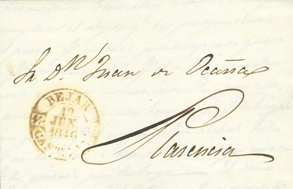 1849. MEMBRIO (BADAJOZ) a CACERES. Baeza ALCANTARA / ESTREM.B., en rojo. MAGNIFICA.