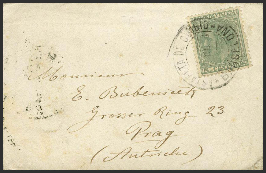 Alfonso XII. RARA TARIFA DE IMPRESOS Y DESTINO INUSUAL.
