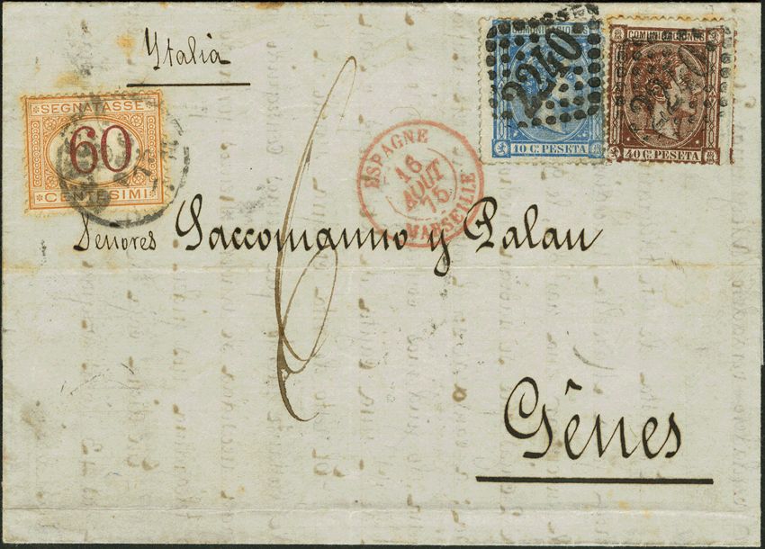 Alfonso XII. Franqueo mixto España-Italia. MAGNIFICO Y RARISIMO.