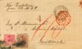 203, 207. 1879. 20 cts castaño rojo y 1 pts rosa (conservación regular). MADRID a GUATEMALA. En el frente fechador tipo trébol ESTAFETA DE CAMBIO / MADRID, franqueo de 1´20 pts para cartas vía Inglaterra según tarifa de Septiembre de 1878. BONITA Y RARA.