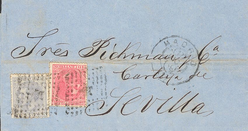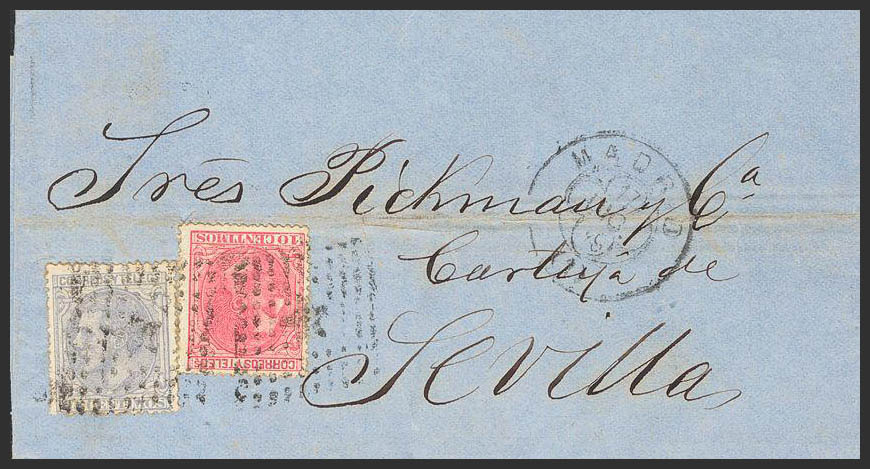 202, 204. 1819. 10 cts rosa y 25 cts azul. MADRID a SEVILLA. MAGNIFICA Y RARA TARIFA DE ALCANCE.