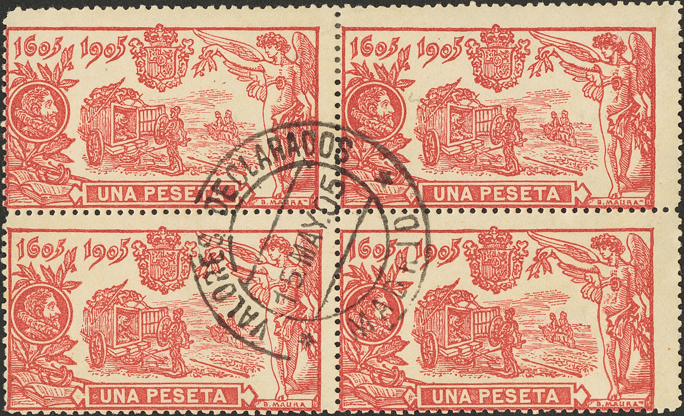 264(4). 1905. 1 pts carmín, bloque de cuatro. Matasello VALORES DECLARADOS / MADRID. BONITO Y RARISIMO, NO MAS DE CUATRO O CINCO CONOCIDOS EN USADO Y SOLO TRES EN NUEVO. Edifil 2015: 4.240 Euros