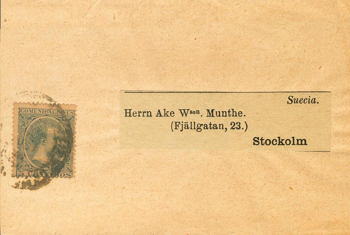 215. (1889ca). 5 cts azul. Faja de Periódico de MADRID a ESTOCOLMO (SUECIA). MAGNIFICA.