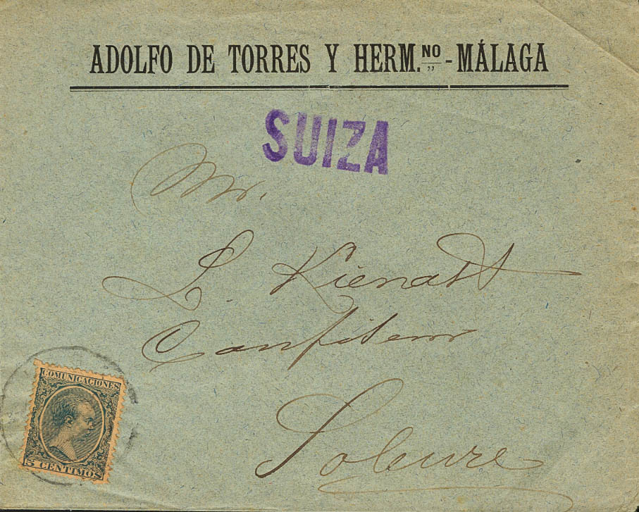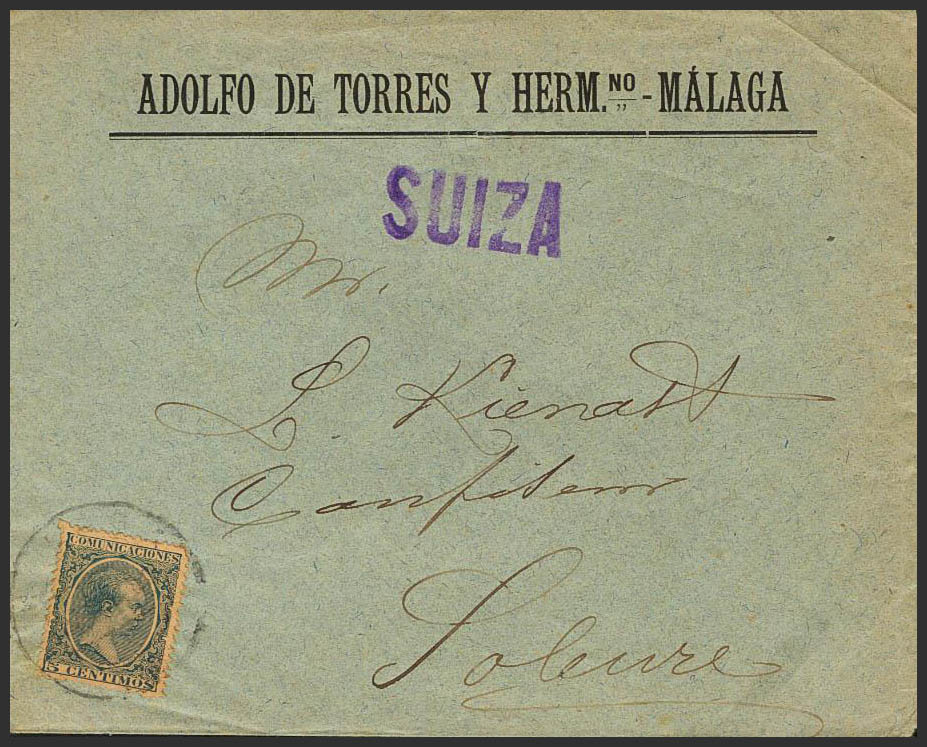 Alfonso XIII. Tarifa de Impresos a SUIZA. MAGNIFICA.