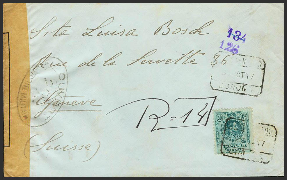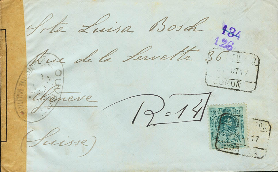 Alfonso XIII Correo Certificado. CERTIFICADO / CORUÑA, al dorso llegada. MAGNIFICA.