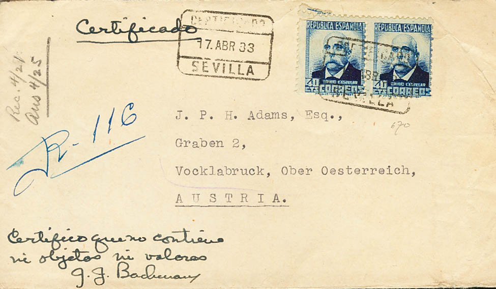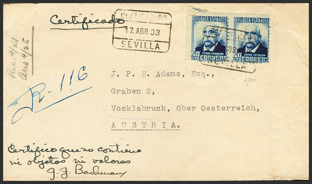 República Española. CERTIFICADO / SEVILLA. MAGNIFICA.