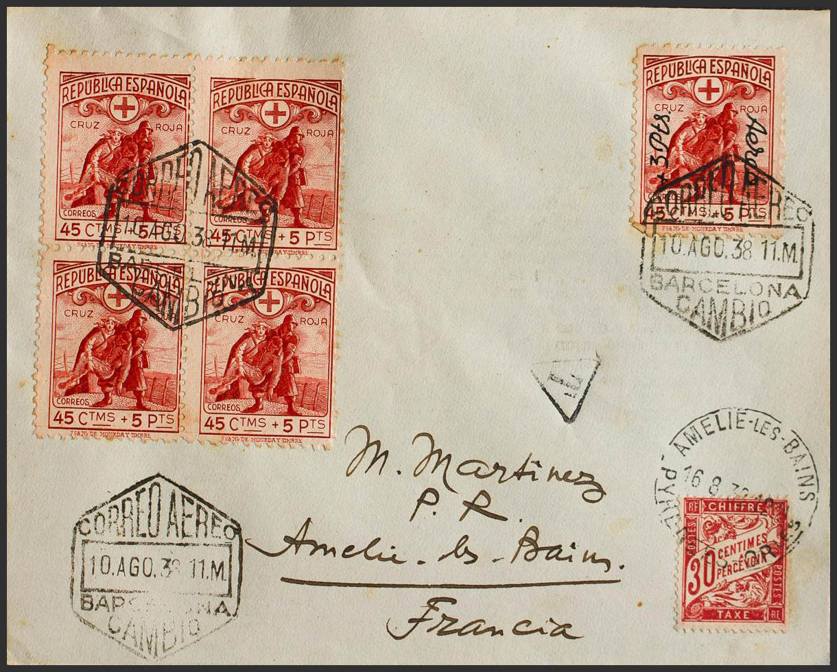 República Española Correo Aéreo. Al dorso llegada. MAGNIFICA.