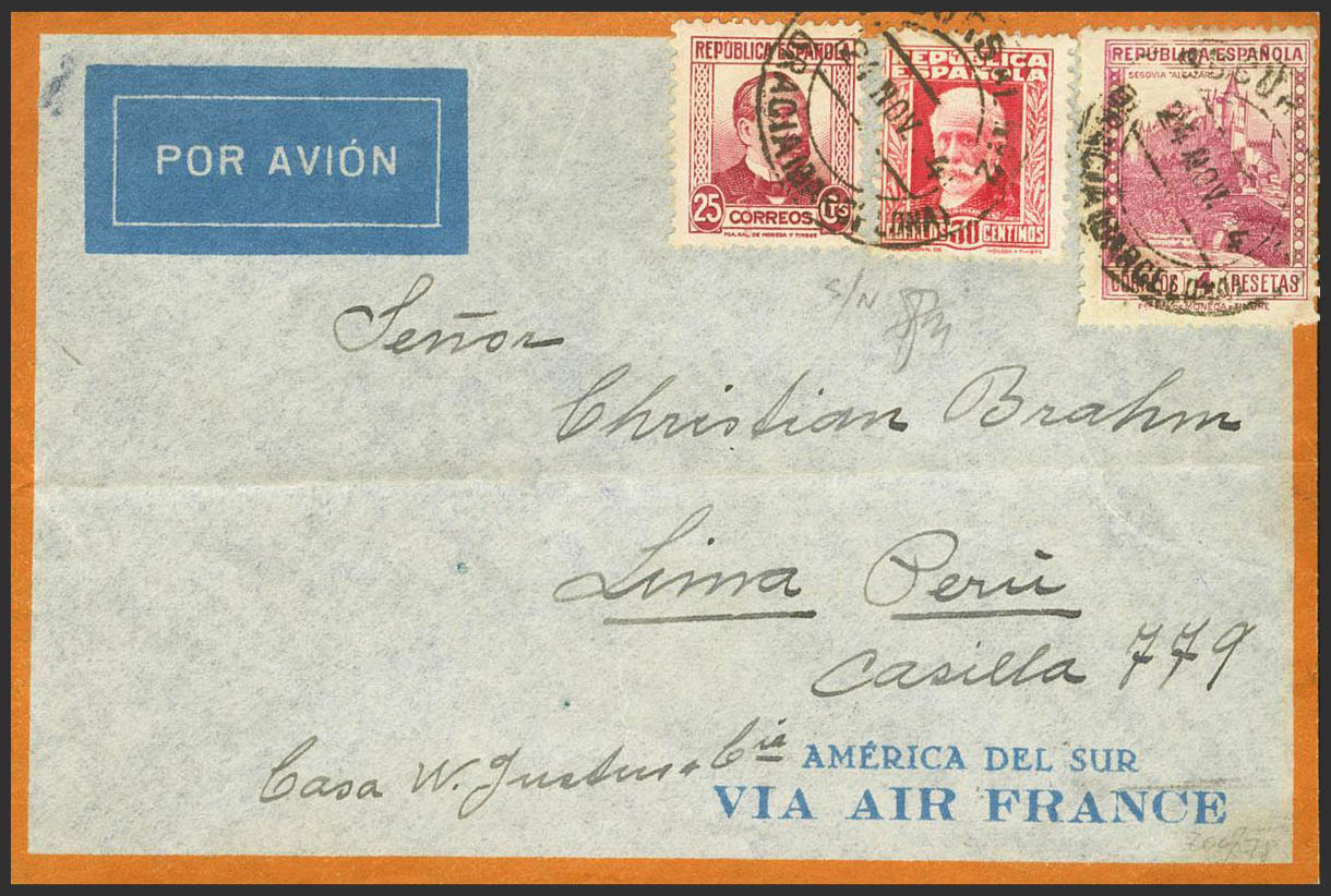 República Española Correo Aéreo. Al dorso llegada. MAGNIFICA.
