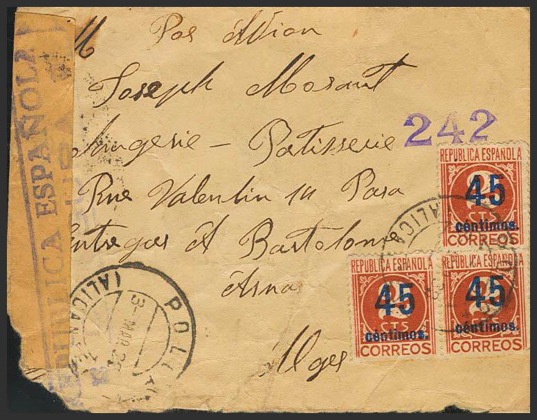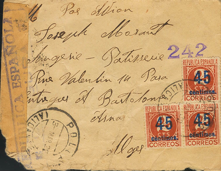 República Española Correo Aéreo. Dirigida a Algeria, al dorso llegada. MAGNIFICA.