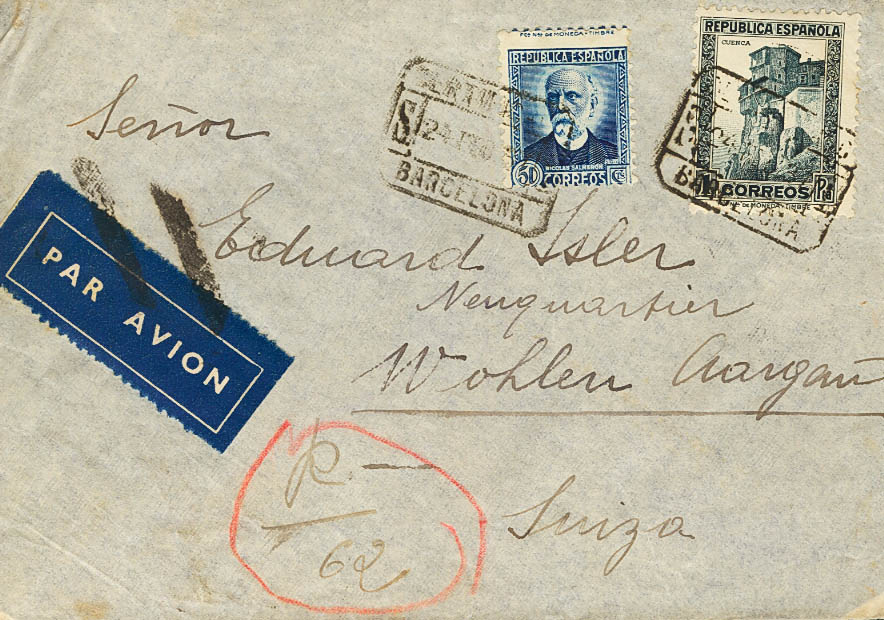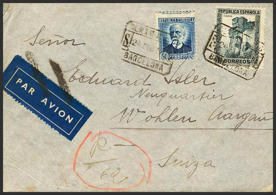República Española Correo Aéreo. Al dorso llegada. MAGNIFICA.