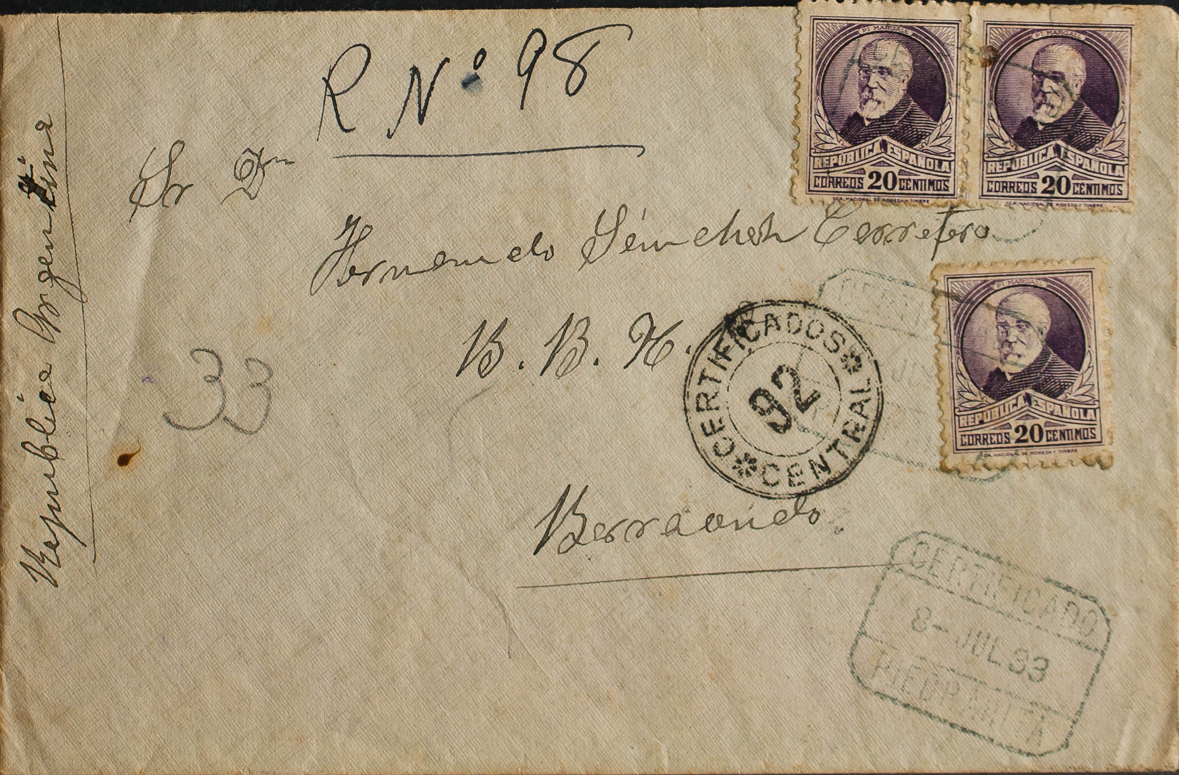 España. República Española Correo Certificado