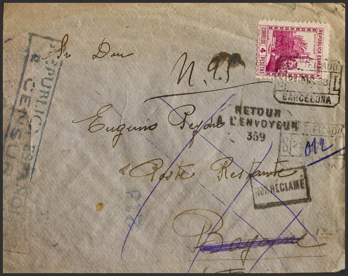 República Española Correo Certificado. Al dorso llegada. MAGNIFICA.