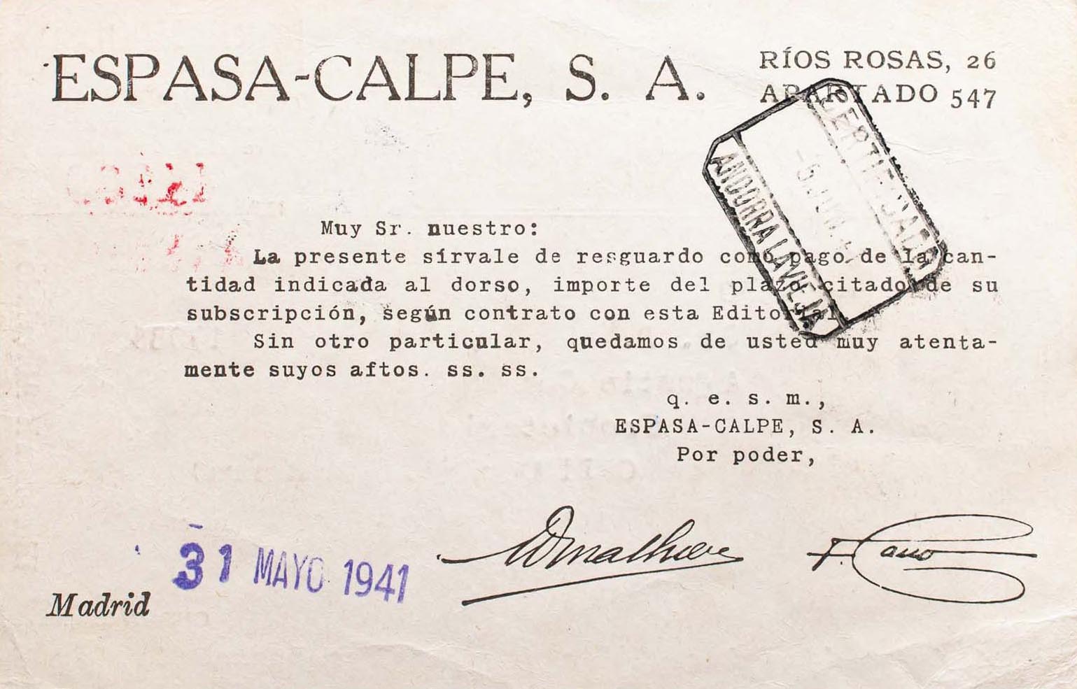 España. República Española Correo Certificado