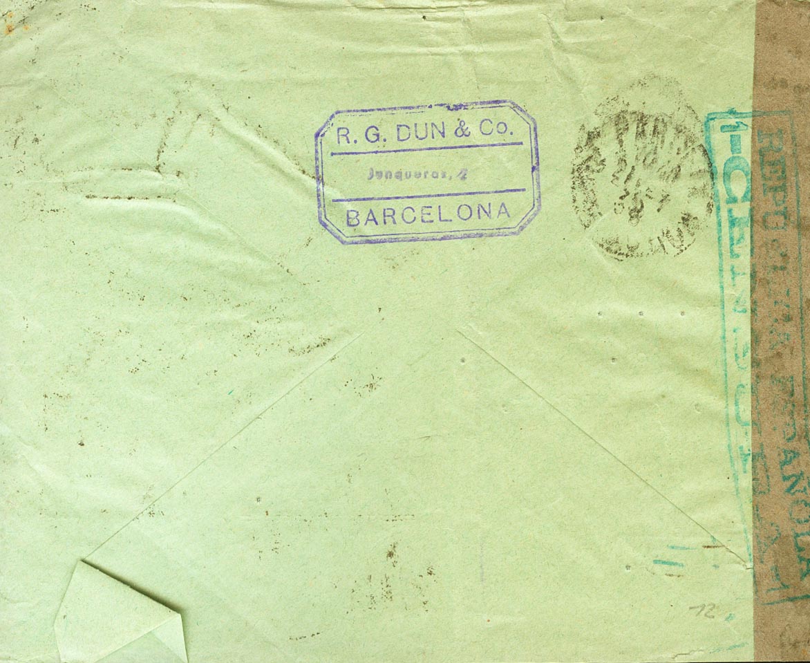 685(12), 673. 1936. 25 cts carmÃn, doce sellos y 1 pts pizarra. Certificado de BARCELONA a PARIS (FRANCIA). Al dorso llegada. MAGNIFICA.