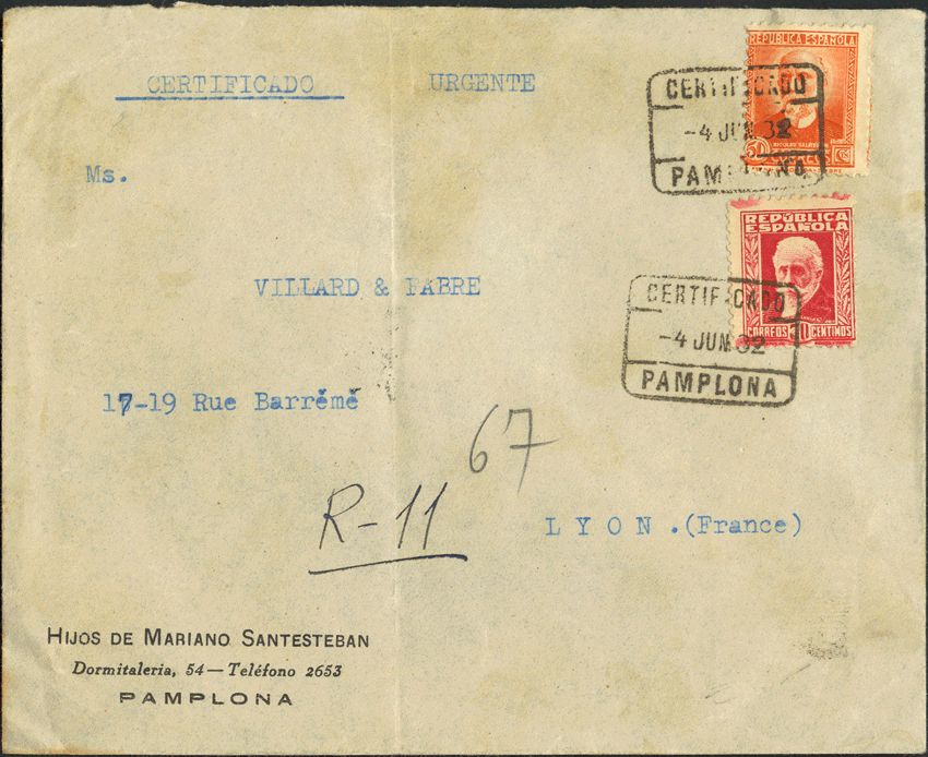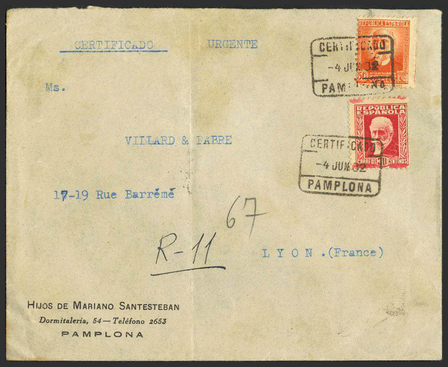 República Española Correo Certificado. Al dorso llegada. MAGNIFICA.