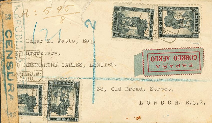 República Española Correo Certificado. CERTIFICADO / ESTAFETA SUCURSAL Nº8 / MADRID, al dorso llegada. MAGNIFICA.