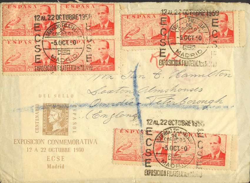 Estado Español. Dirigida al insigne filatélico IAN HAMILTON. MAGNIFICA.