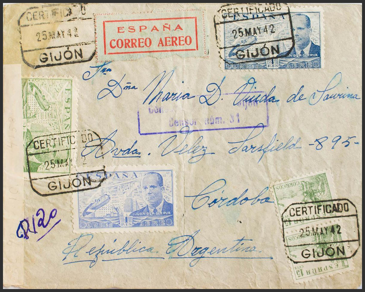 Estado Español Correo Aéreo. Al dorso tránsito. MAGNIFICA.