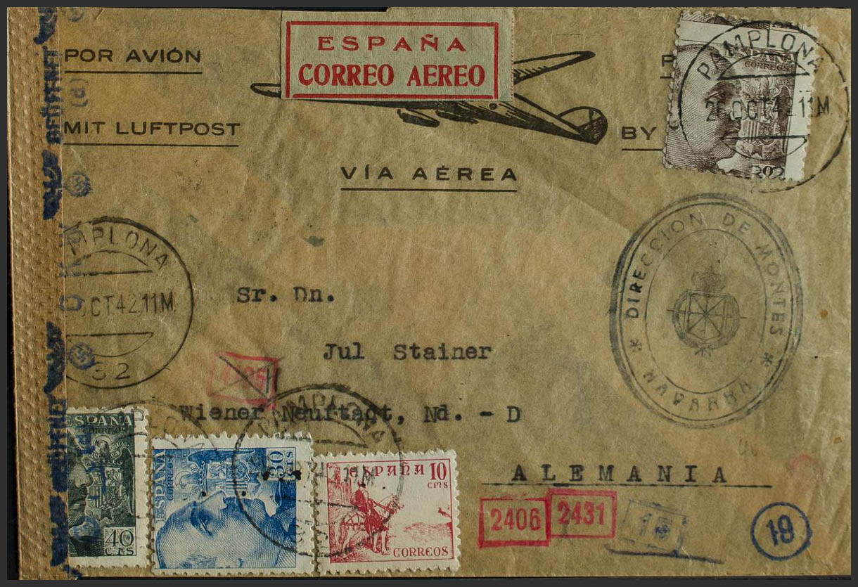 Estado Español Correo Aéreo. DIRECCION DE MONTES / PAMPLONA / NAVARRA, al dorso llegada. MAGNIFICA.
