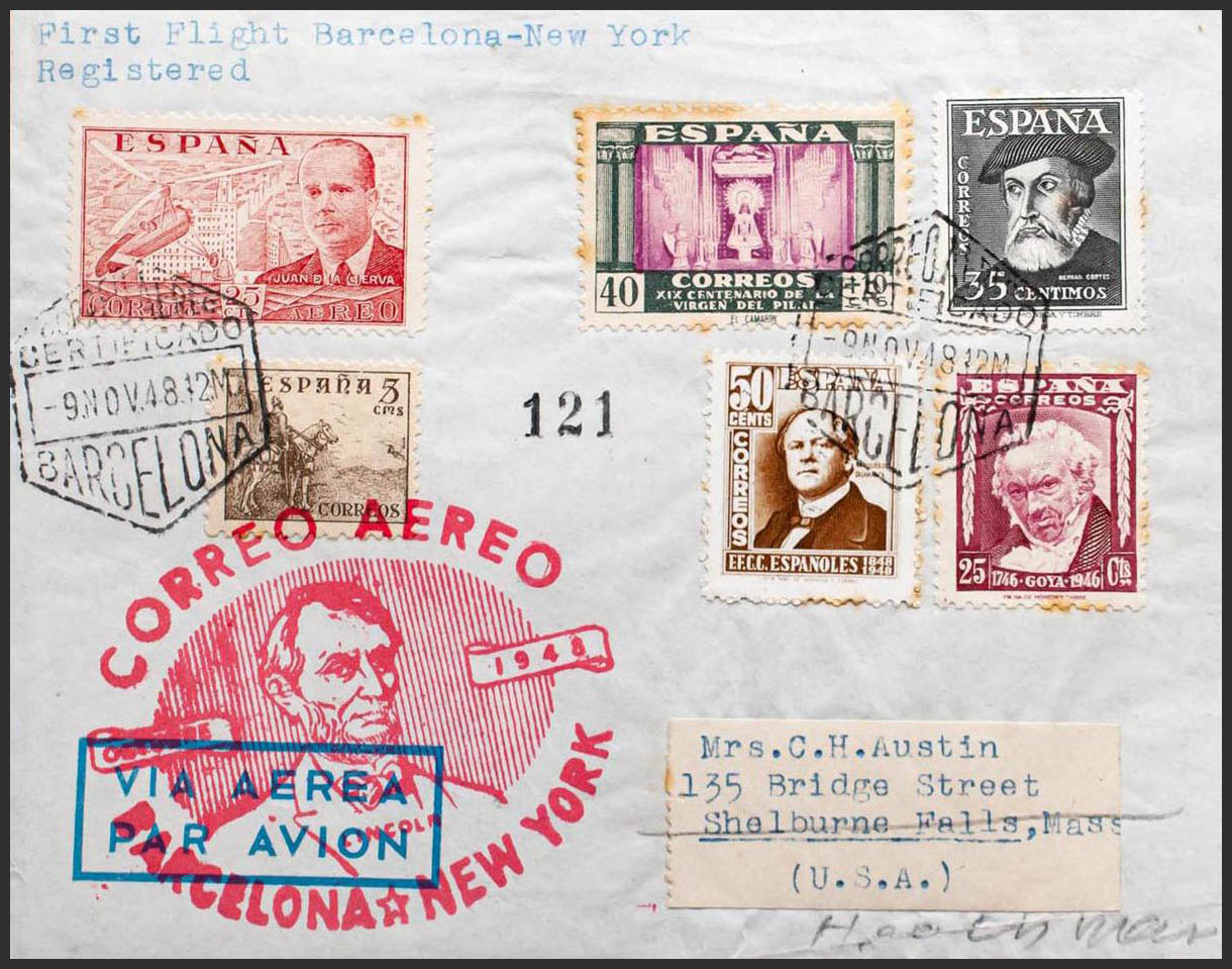 Estado Español Correo Aéreo. Al dorso llegada. MAGNIFICA.