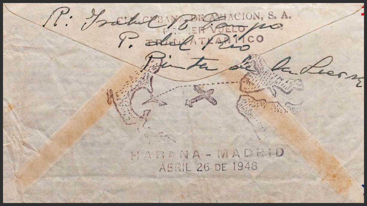 Estado Español Correo Aéreo. 1º VUELO HABANA-MADRID. MAGNIFICA Y RARA.