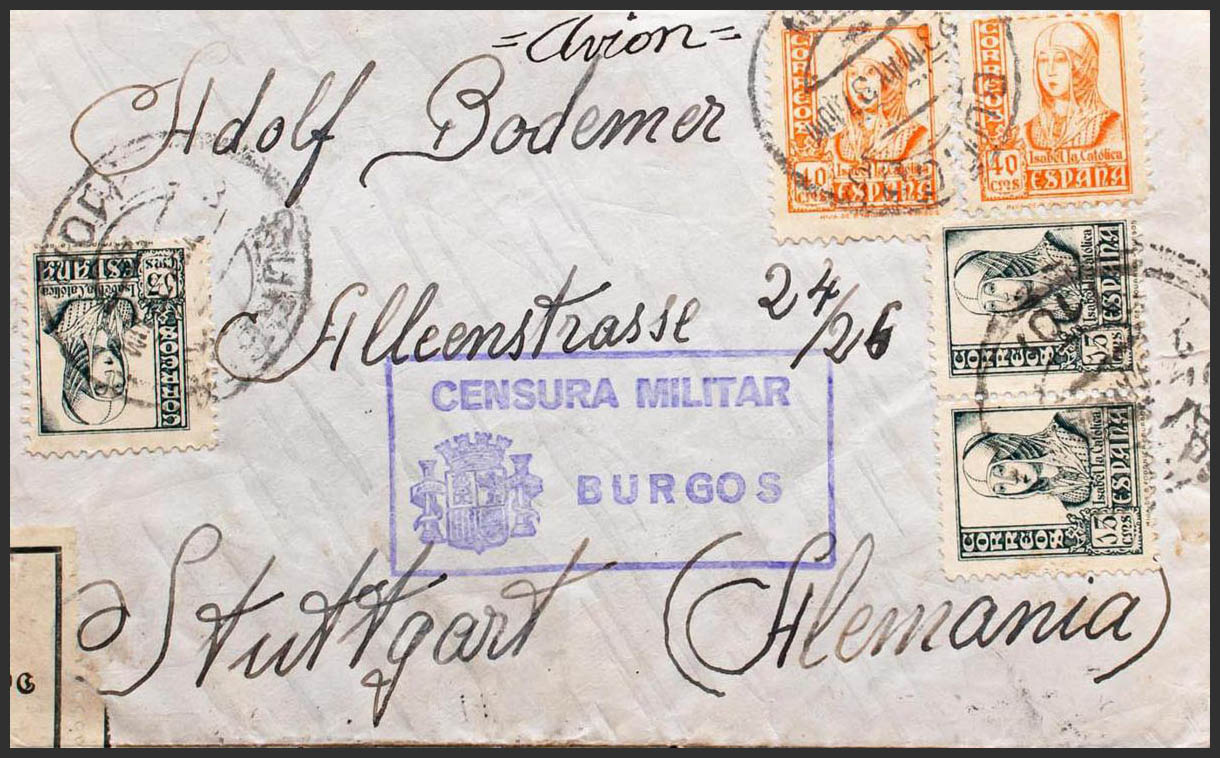 Estado Español Correo Aéreo. BURGOS / (10). Al dorso llegada. MAGNIFICA.