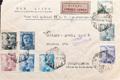 922/24, 927, 929, 930, 999. 1946. Diversos valores. Correo Aéreo de SEVILLA a JOHANESBURGO (AFRICA DEL SUR). En el frente texto "Par Vol special K.L.M. AMSTERDAM-JOHANNESBURG", al dorso marca PROEFVLUCHT KLM / AMSTERDAM / 6-OCT-1946 / NEDERLAND-ZUID AFRIKA. MAGNIFICA Y RARA.