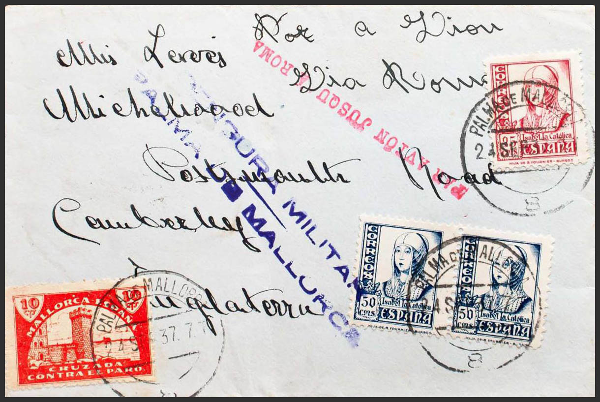 Estado Español Correo Aéreo. Dirigida a INGLATERRA. PAR AVION JUSQ´A ROMA. MAGNIFICA.