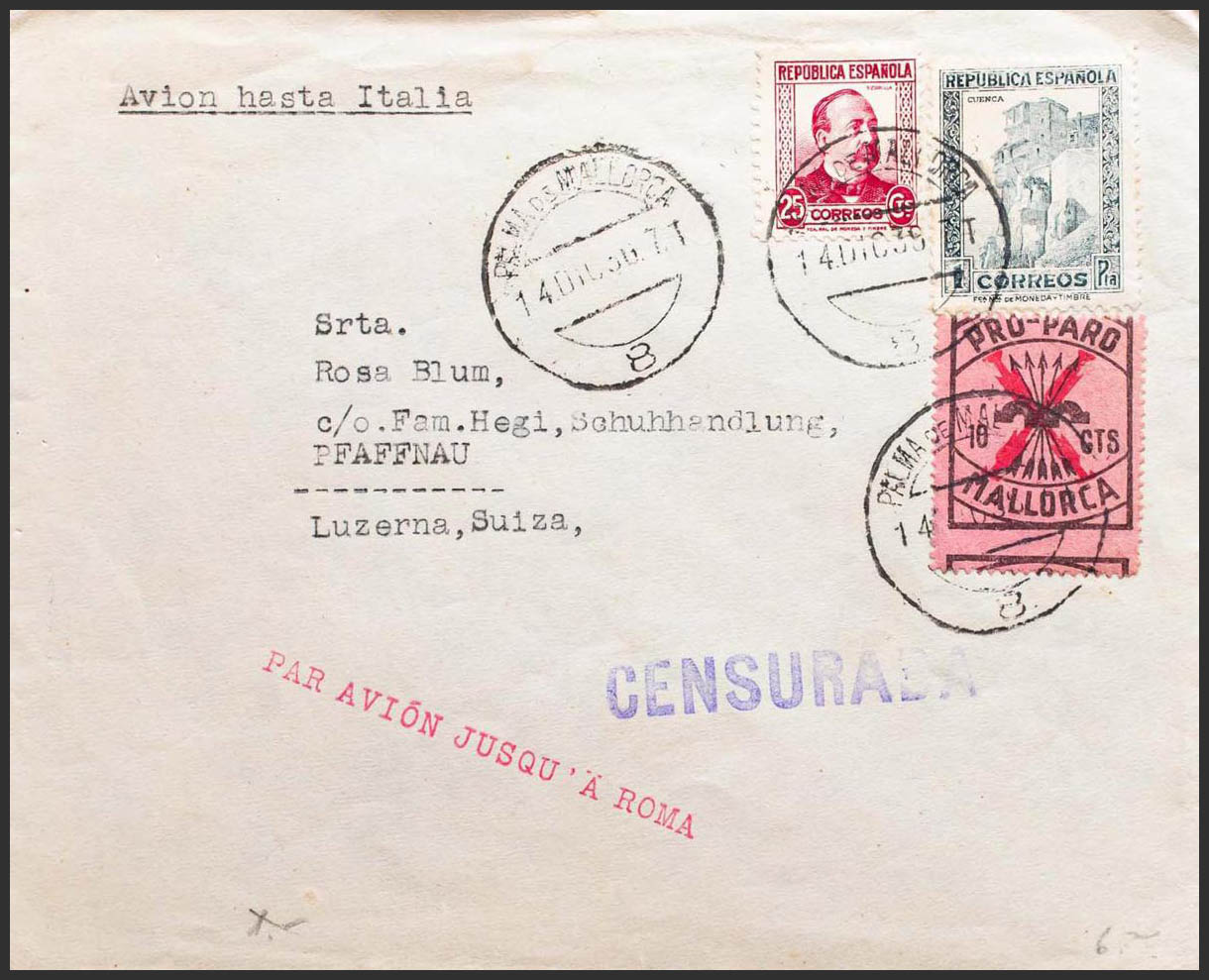 Estado Español Correo Aéreo. Dirigida a SUIZA. PAR AVION JUSQU´A ROMA. MAGNIFICA.