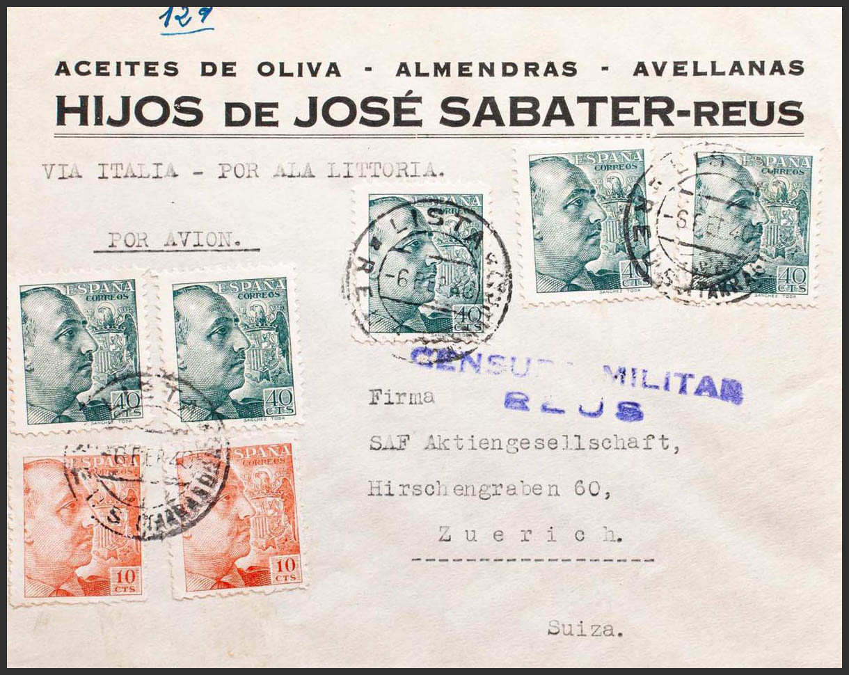 Estado Español Correo Aéreo. LISTA / REUS (TARRAGONA), al dorso tránsito. MAGNIFICA.