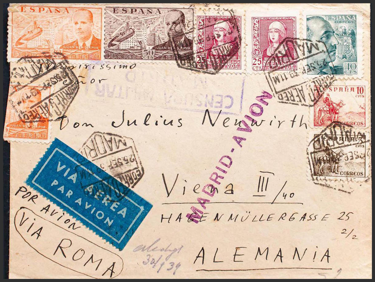 Estado Español Correo Aéreo. Al dorso tránsito. MAGNIFICA.