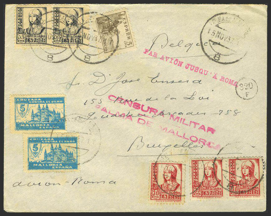 Estado Español Correo Aéreo. PAR AVION JUSQU'A ROMA.