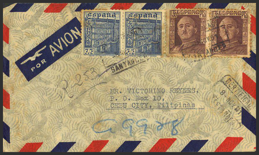 Estado Español Correo Aéreo. Dirigida a Filipinas.