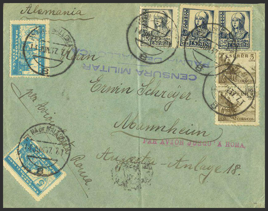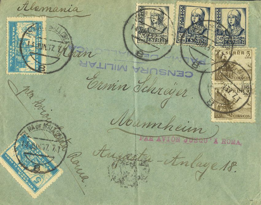 Estado Español Correo Aéreo. Al dorso tránsito.