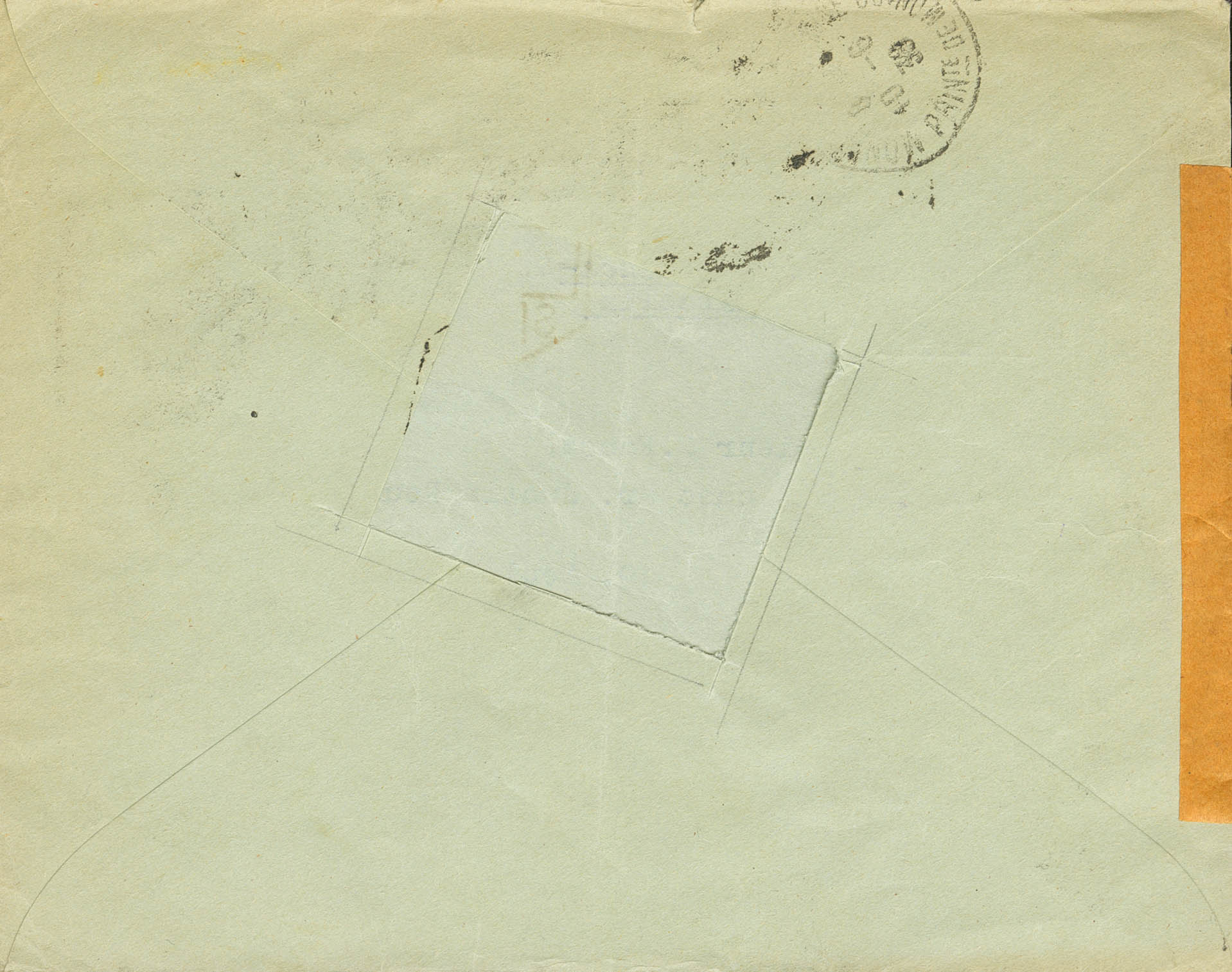 822(4), 843. 1938. 25 cts carmín, cuatro sellos y 30 cts rojo. Correo Aéreo de SEVILLA a MONACO. Al dorso llegada (recorte sin importancia de lo que podría ser un sello Benéfico). MAGNIFICA E INUSUAL DESTINO.