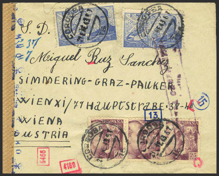 Estado Español Correo Aéreo. Dirigida a AUSTRIA, al dorso tránsito. MAGNIFICA.