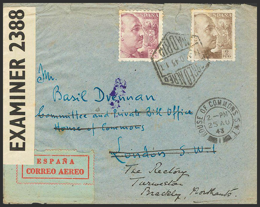 Estado Español Correo Aéreo. CORREO AEREO / MADRID, en el frente llegada. MAGNIFICA.